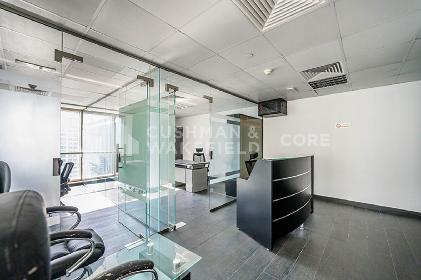 Cushman & Wakefield Core presents this 879 sqft office located in Goldcrest Executive, JLT. Positioned on a mid-floor, the property provides one parking space and is available for lease. The unit comes with raised flooring and data-enabled floor boxes, a DEWA meter, and a suspended ceiling with all Mechanical, Electrical and Plumbing (MEP) works completed. The building is made up of 40 floors, ground-floor retail, and ample visitor parking, with easy access to Sheikh Zayed Road and the Dubai Metro. The lease rate is AED 136.52/sqft or AED 120,000 per annum, subject to 5% VAT.