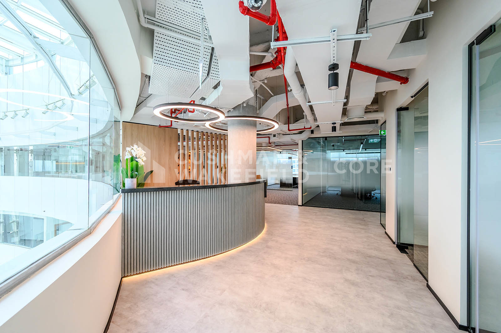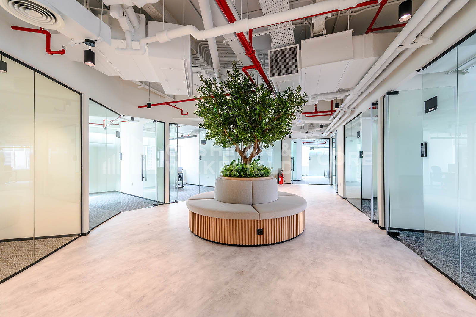 - All office floors look into a sky atrium