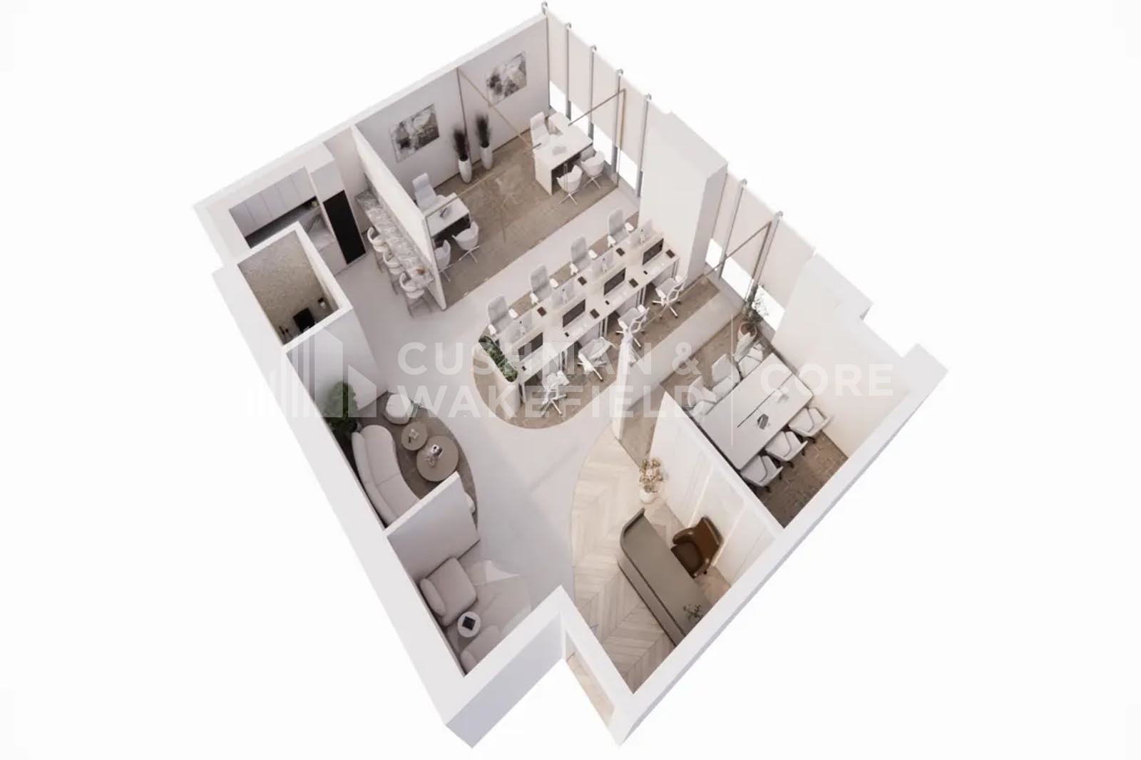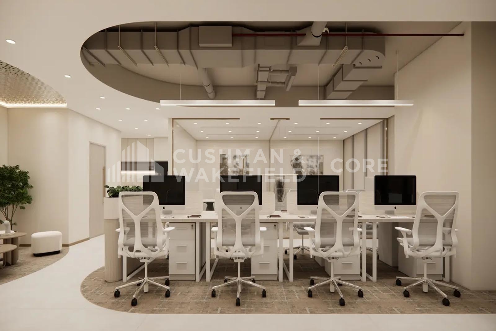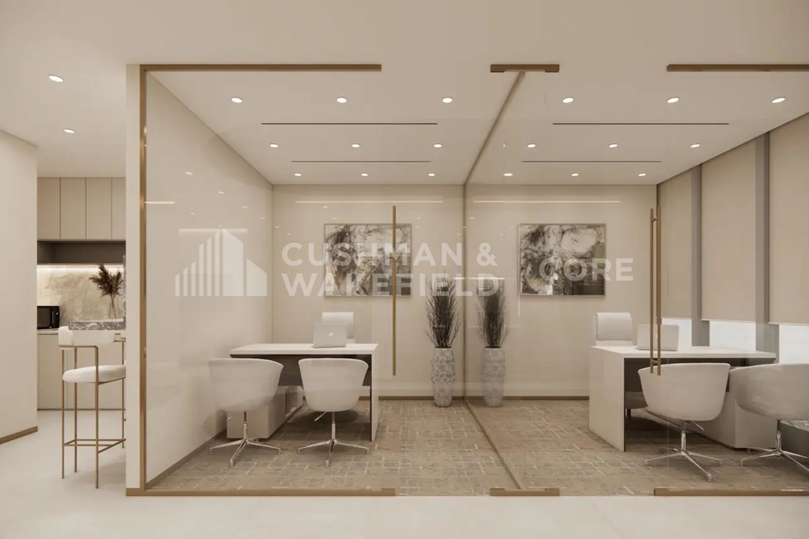 - Fitted layout with 2 manager’s rooms and 1 meeting room